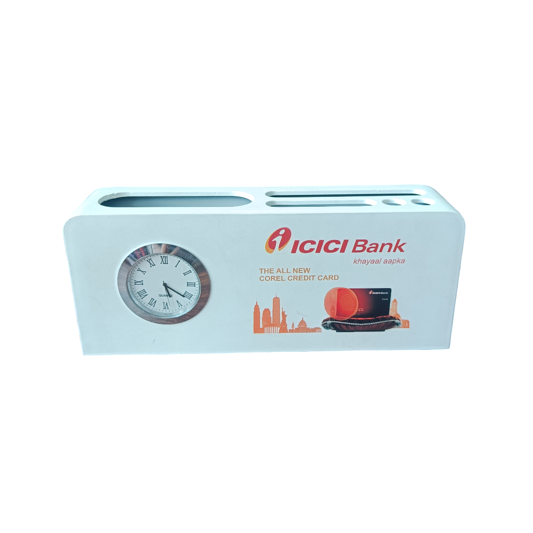 Metal Pen Stand With Clock